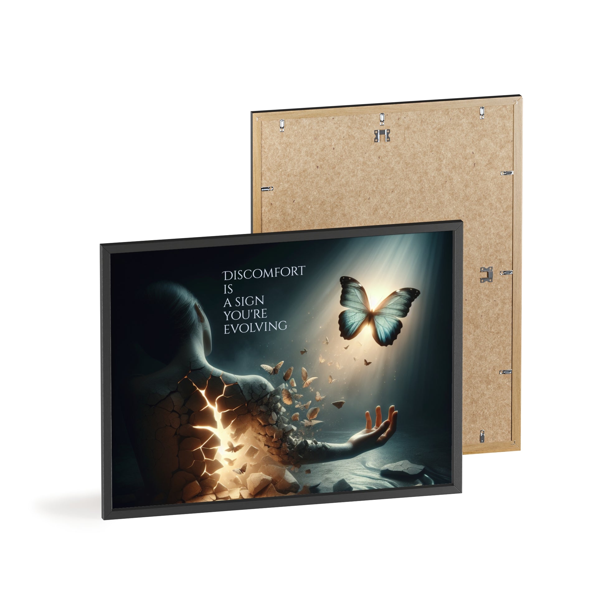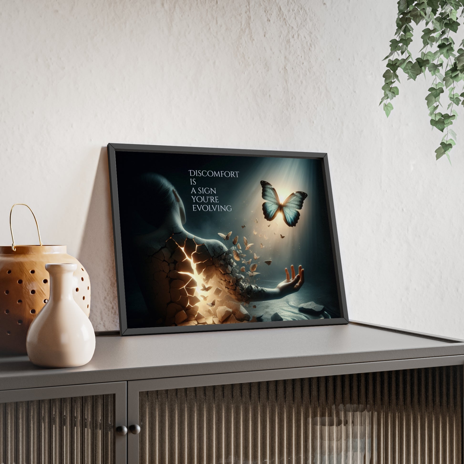 Motivational quote wall art "Discomfort is a sign you're evolving" poster